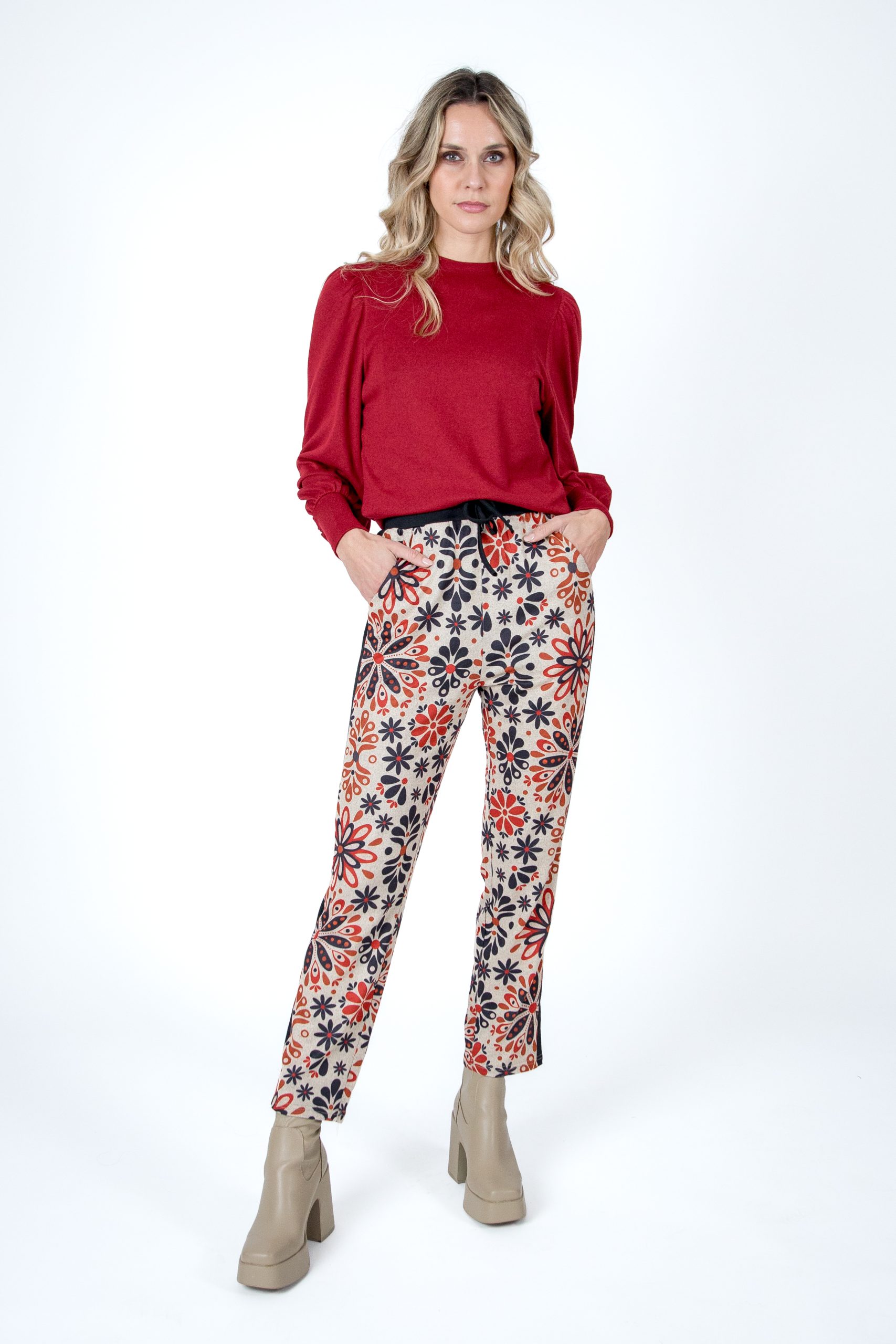 Jersey en color liso con manga abullonada y puño rib. Cuello a la caja.