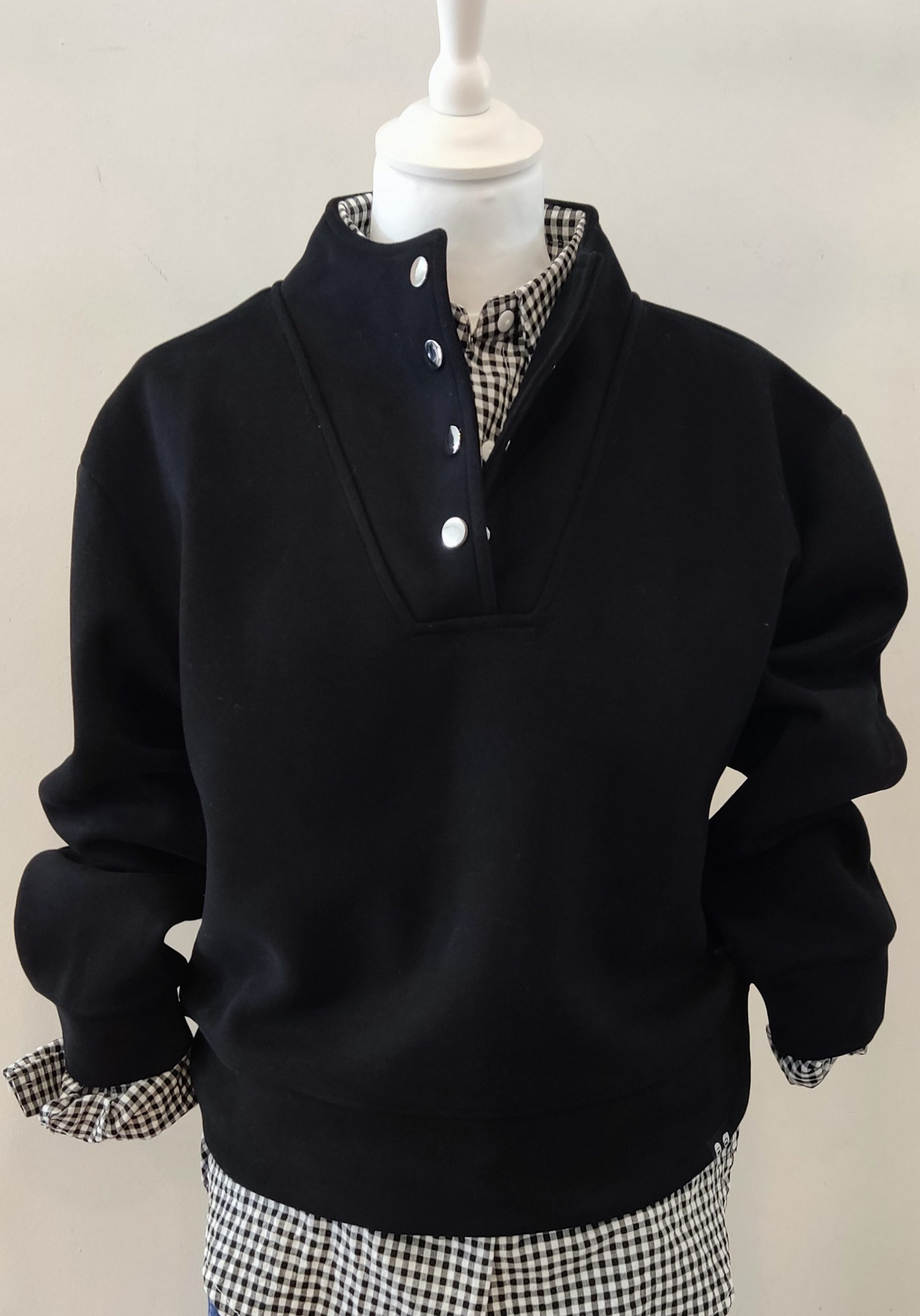 Sudadera cropped estilo troyer en color negro con cremallera. Puños y cintura rib.